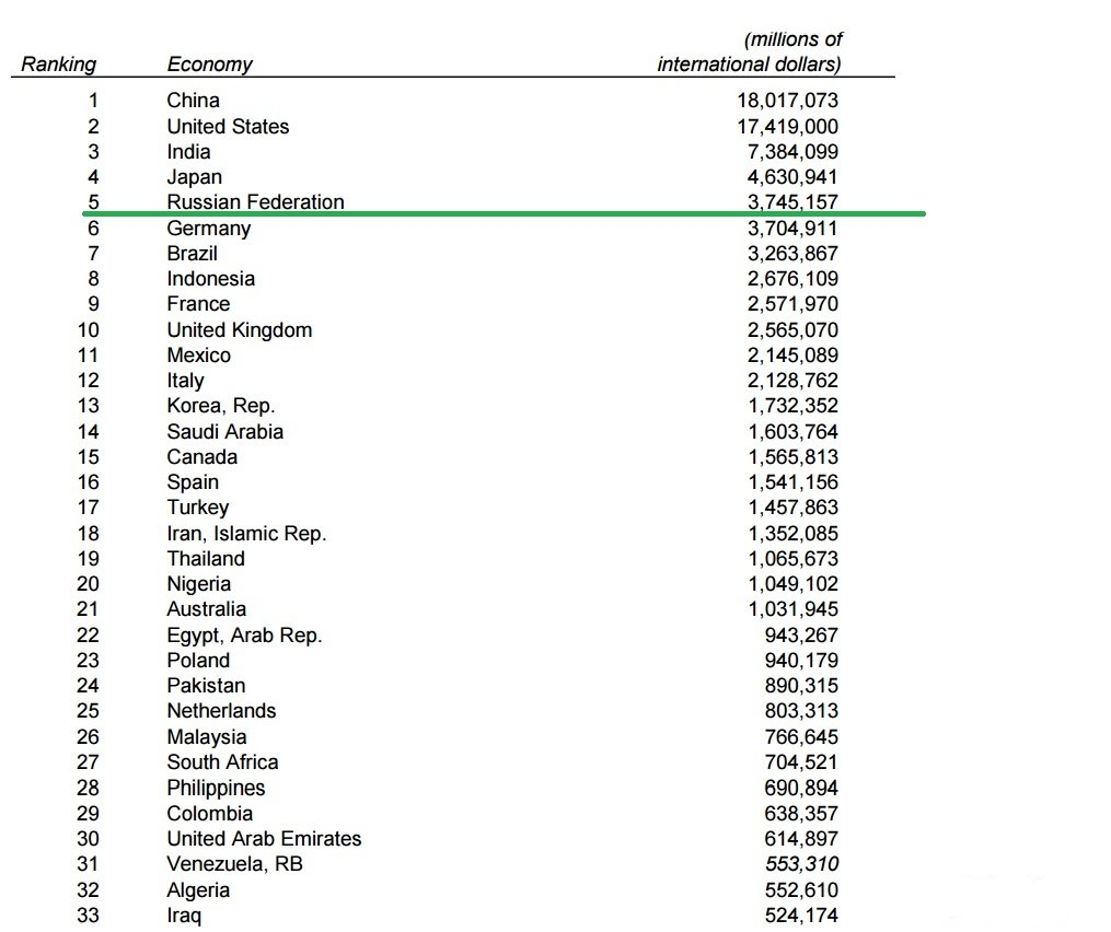 ВСЕМИРНЫЙ БАНК: РОССИЯ ОБГОНЯЕТ ГЕРМАНИЮ И СТАНОВИТСЯ 5-Й ЭКОНОМИКОЙ МИРА