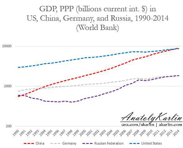 Китай обгоняет США, а Россия – Германию. Такой вывод следует из последних данных ВБ о размерах их ВВП в пересчете на паритет покупательной способности (ППС). Оригинал статьи был опубликован на The Unz Review