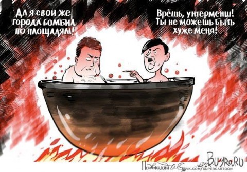 Ровно то же самое происходит и в ситуации с Украиной. Пропаганда врага и здесь всё перевернула с ног на голову и опять же Россия во всем оказалась виноватой. Причем эта пропаганда вещает не только из-за бугра, а буквально из под нашей кровати. Вот как подает исходную точку украинского кризиса то же «российское» агентство РБК : «Даже европейское спокойствие поставлено под угрозу, как показывает сепаратистский конфликт в восточной Украине, который до заключения нынешнего перемирия унес более 6000 жизней».