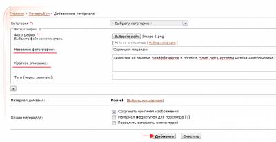 5. Введите название фотографии, краткое описание и нажмите «Добавить»: