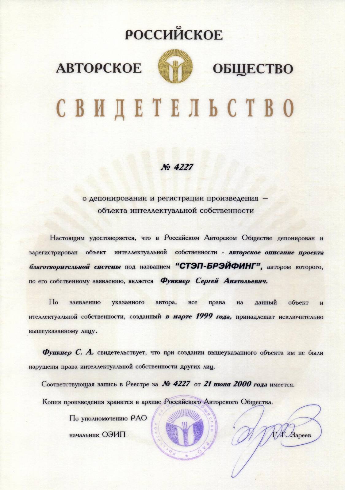 Свидетельство РАО